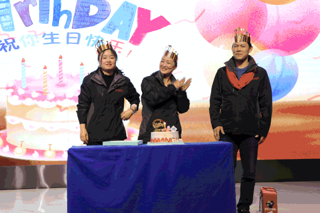年會(huì)上,公司還為本月過生日的員工舉行了生日會(huì)。眾人齊唱著生日祝福歌,壽星們頭戴著皇冠,許下自己新一年的愿望。