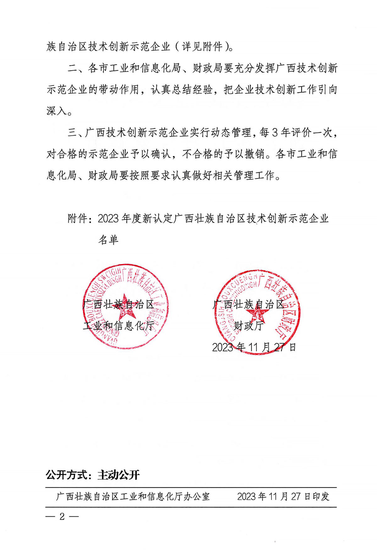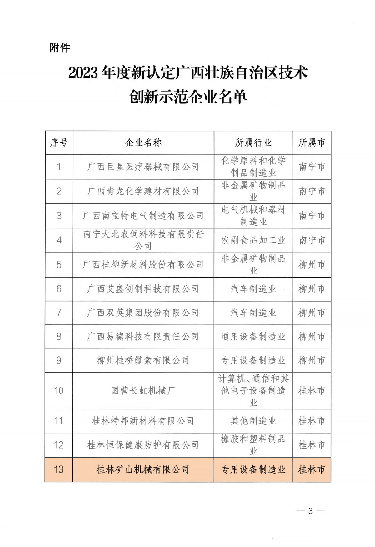 日前,自治區工業和信息化廳、自治區財政廳公布2023年度新認定廣西壯族自治區技術創新示范企業名單的通知,根據《廣西技術創新示范企業認定管理辦法(試行)》(桂工信科技〔2014〕43號)有關要求,經市經信部門推薦、專家評審、社會公示等環節,桂林礦山機械有限公司等20家企業獲評2023年度新認定廣西技術創新示范企業。