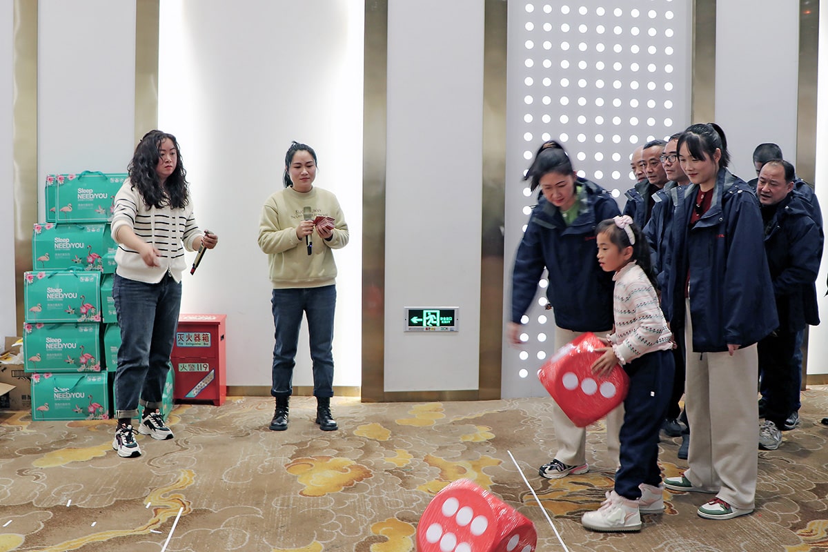 文藝演出之后,一場別開生面的擲色子、套圈小游戲又讓現(xiàn)場氣氛達到了高潮。活動開始前,現(xiàn)場已經(jīng)布置妥當,色子整齊地擺放在指定位置。員工們紛紛到場,他們躍躍欲試,期待在這場游戲中展現(xiàn)自己的智慧與技巧。